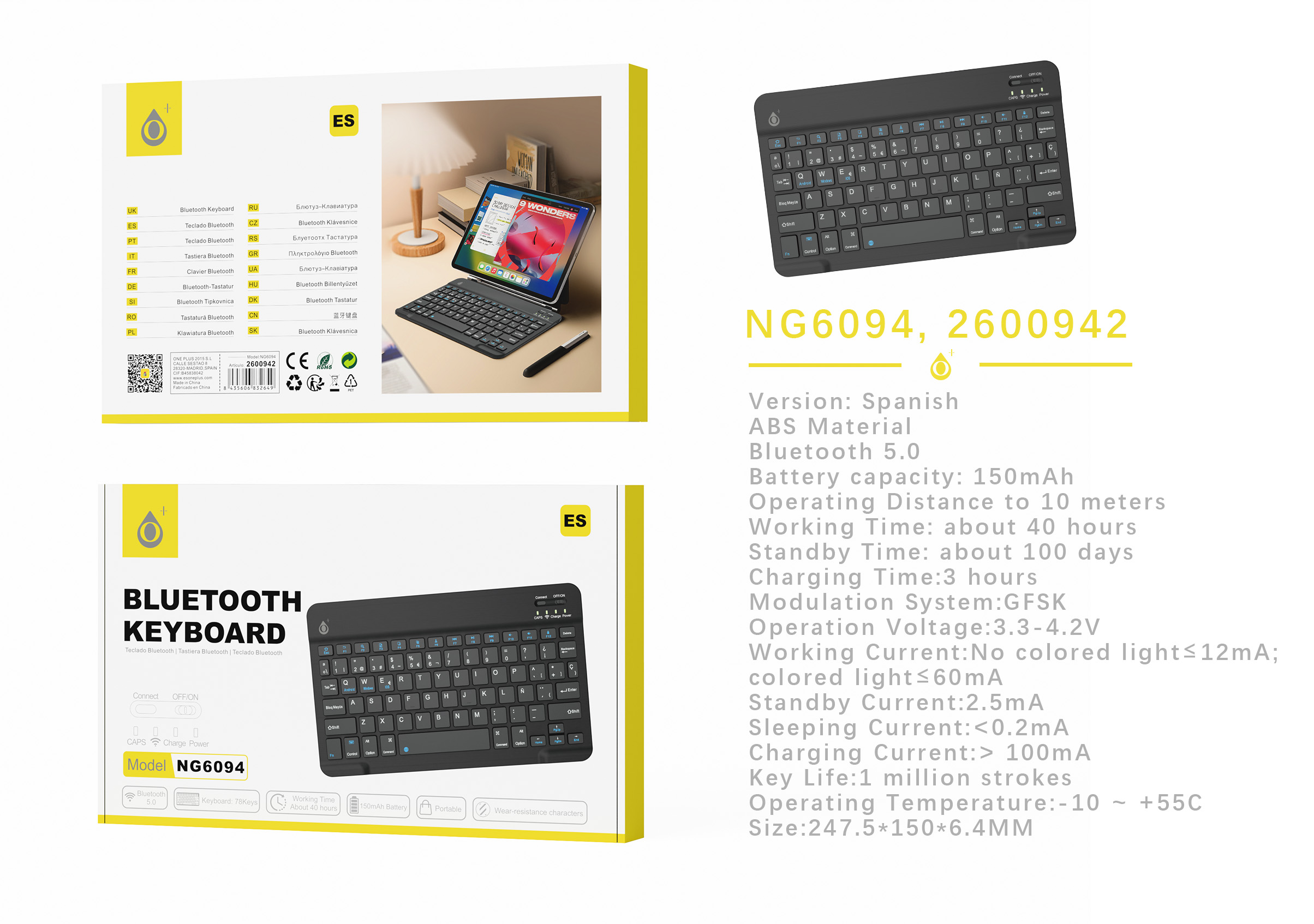NG6094 NE Mini Teclado Espanol inalambrico con Bluetooth5.0 , 78 Keys, Bateria 150mAh,Negro