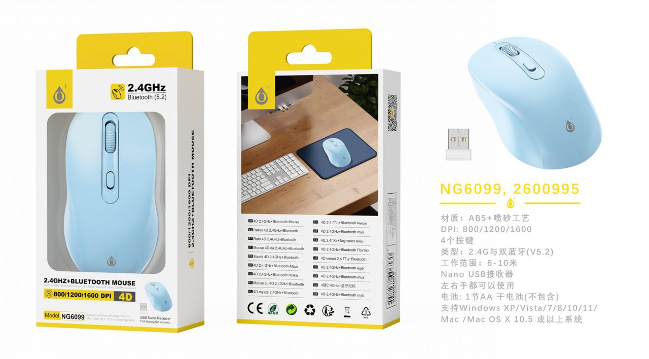 NG6099 蓝色 蓝牙2.4G双模 4D无线鼠标 dpi:800-1600 ABS