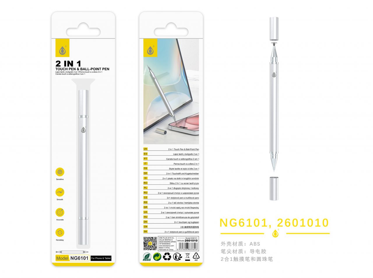 NG6101 GR Lapiz 2 en 1 puntero+boligrafo, Gris