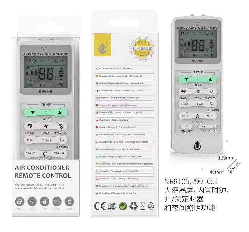 NR9105 BL Mando Universal Control Remoto para Aire Acondicionado Blanco