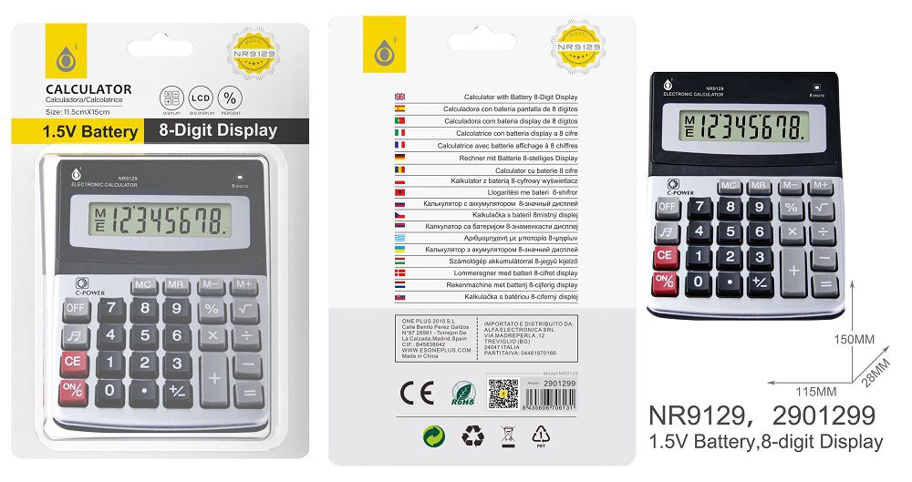 NR9129 GR Calculadora de 8 digitos con Pantalla grande de LCD, Bateria 1,5V, Tamaño 15 x 11,5 cm,Gris
