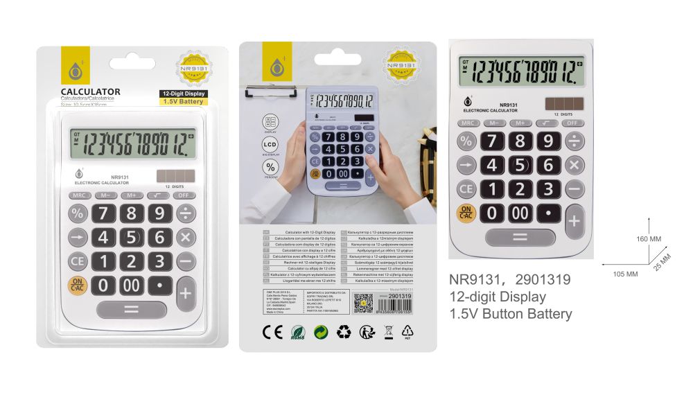 • NR9130 PL Calculadora de 8 dígitos con Pantalla grande de LCD, Batería 1,5V, Tamaño 11.8 x 7,6 cm,P
