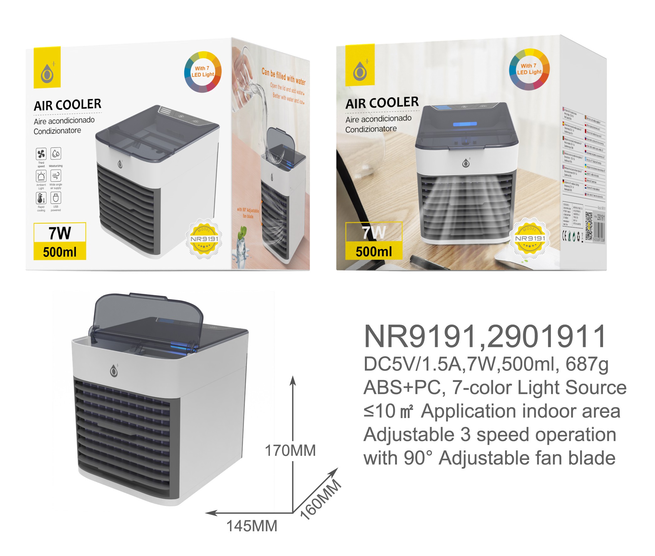 NR9191 BL Aire Acondicionador Portatil Capacidad Agua 500ml, 7W, con Ventilador Ajustable 90
