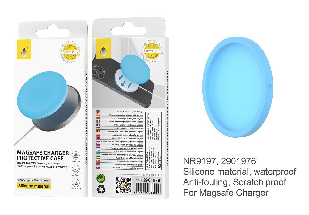 NR9197 AZ Estuche Protector de Silicona para cargador inalambrico Magsafe, Impermeable, Antirayado y Antimancha, Azul