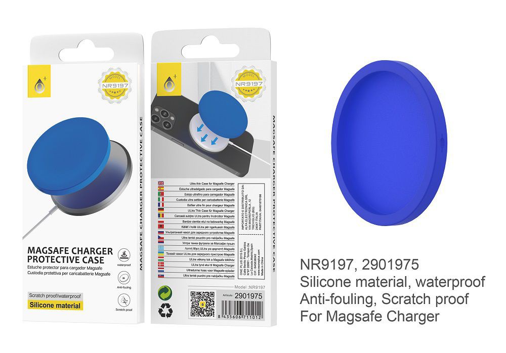 NR9197 AZ OS Estuche Protector de Silicona para cargador inalambrico Magsafe, Impermeable, Antirayado y Antimancha, Azul Oscuro