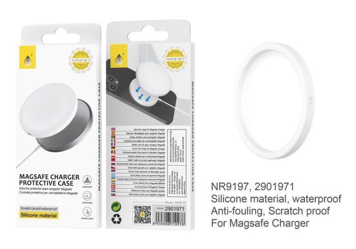 NR9197 BL Estuche Protector de Silicona para cargador inalambrico Magsafe, Impermeable, Antirayado y Antimancha, Blanco