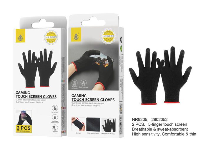 NR9205 NE Guante para juegos moviles. para 2 manos.  Antisudor y Comodo. con Alta sensibilidad Negro