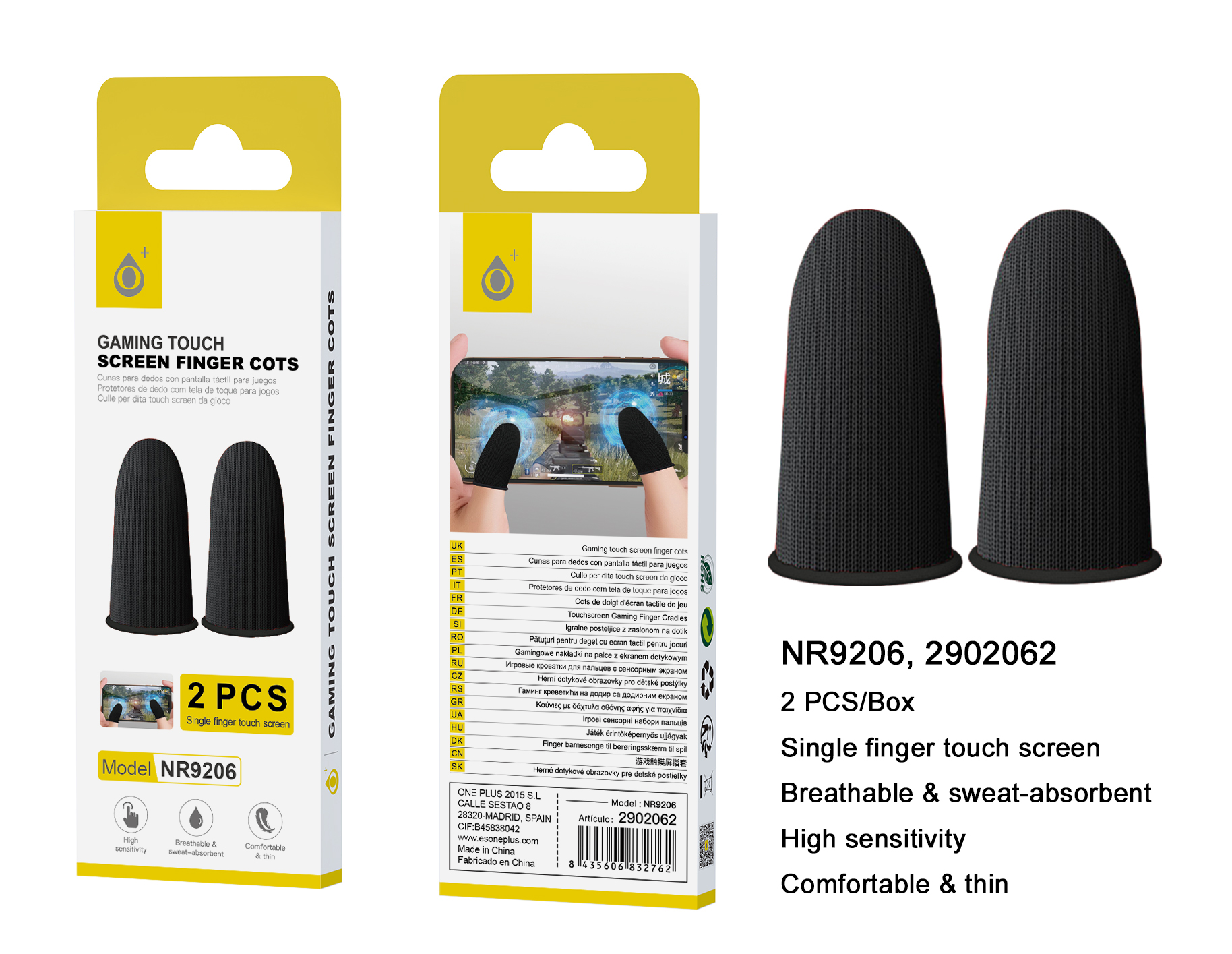 NR9206 NE Mangas para Dedos de Juegos moviles, para 2 dedos, Antisudor y Comodo, con Alta sensibilidad, Negro