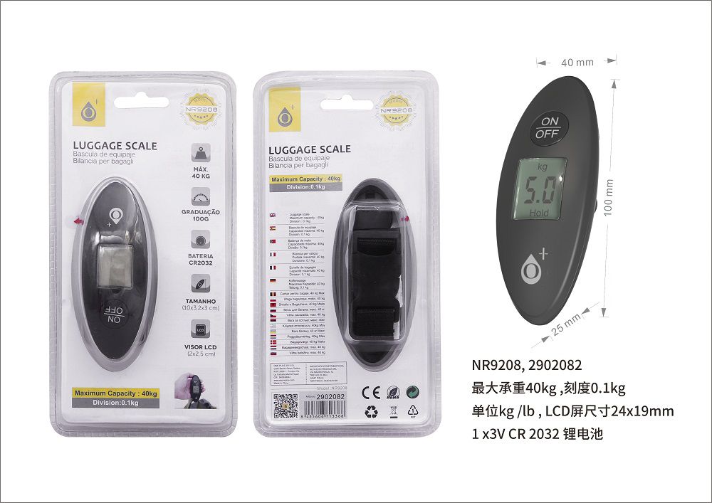 NR9208 NE Bascula de Equipaje, Maxima Capacidad 40kg, Bateria CR2032, Division 0,1kg, Negro