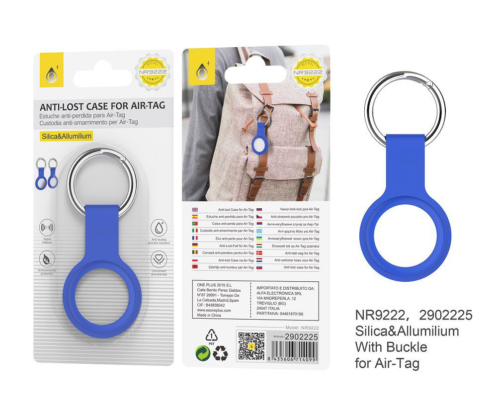 NR9222, AZ Estuche Anti-Perdida para Air-Tag de Aluminio, Azul