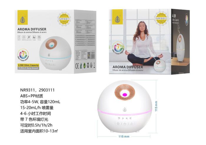• NR9306 BL Humificante Aroma Air Luz Ambiental 7 color Capacidad 300ML ,25-45ml/H , 2W, Blanco