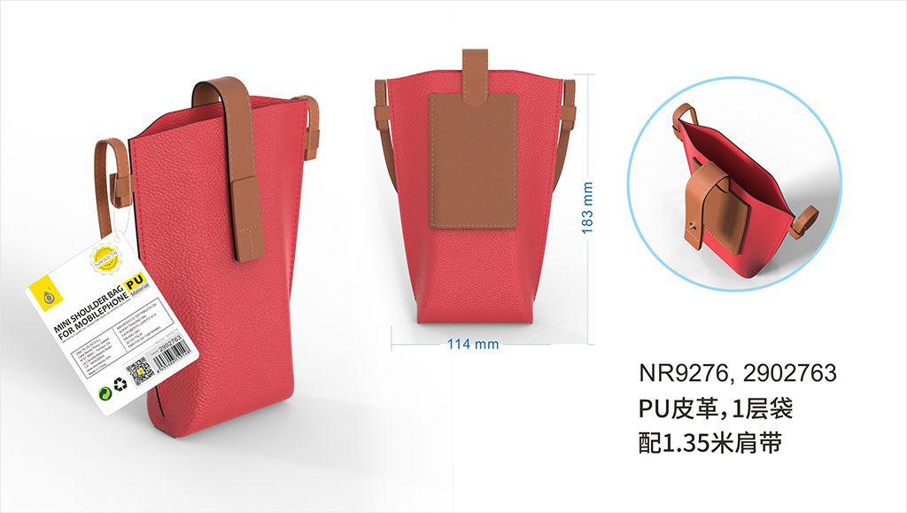 NR9276 RJ Mini bolso de Cuelo Imitacion para movil con cordon,Rojo