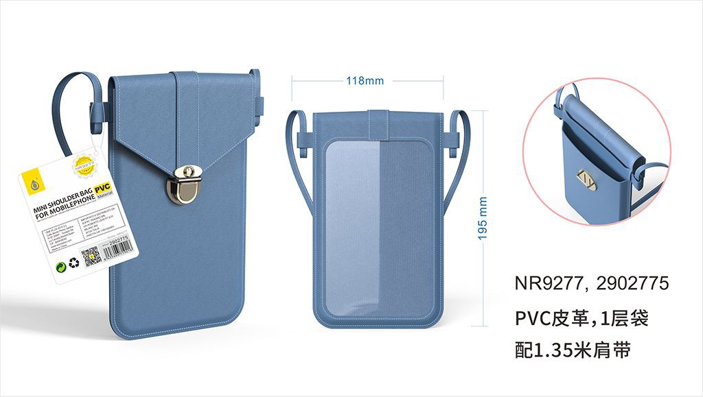 NR9277 AZ Mini bolso de PVC para movil con cordon, Azul