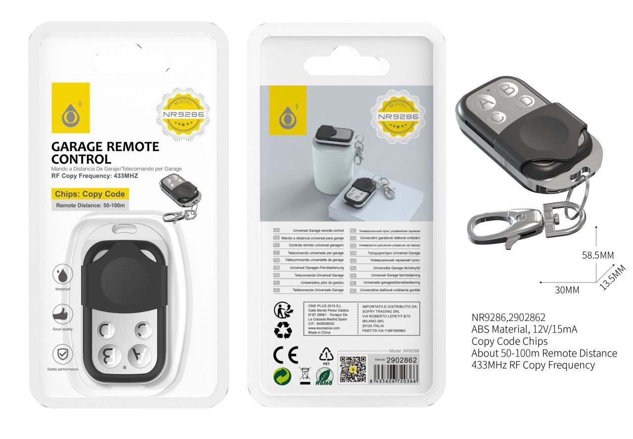NR9286 NE Mando de Garaje Universal hasta 100 Metros de Distancia egro