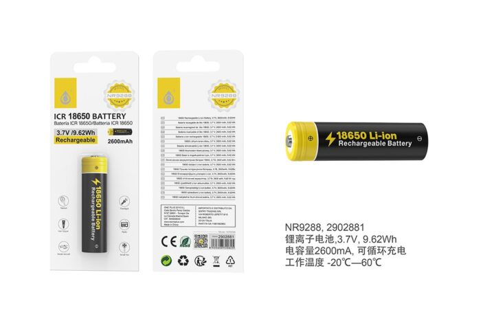 NR9288 NE Bateria de Litio Recargable 18650 2600mah 3.7V,Negro
