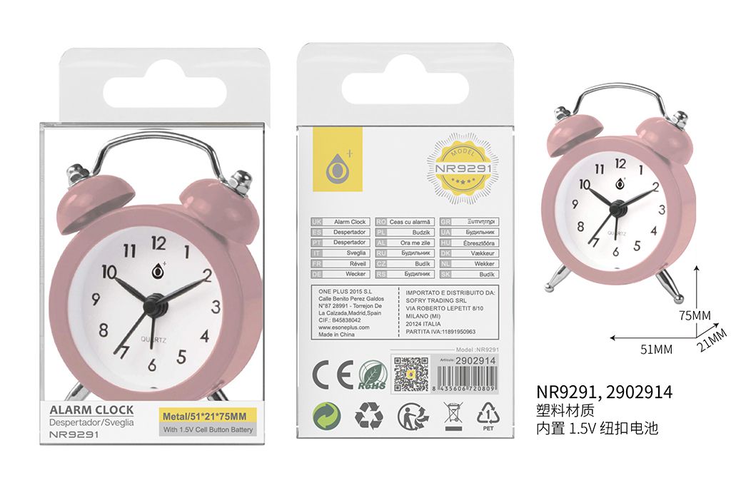 • NR9293 RS Reloj con Despertador NO Incluye PILA 8.8*3.4*9.3 CM, Rosa