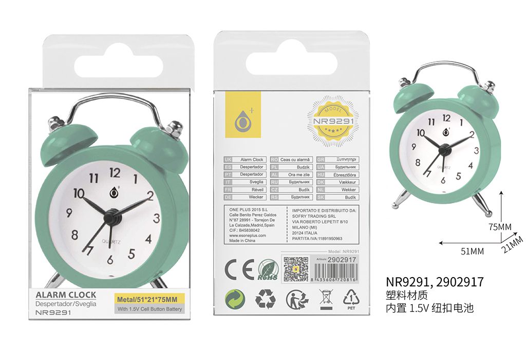 • NR9289 VE Reloj con Despertador NO Incluye PILA 7.9*7.9*3.6 CM,Verde