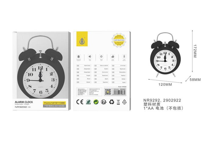 NR9292 NE Reloj con Despertador NO Incluye PILA  12*5.8*17.2 CM,Negro
