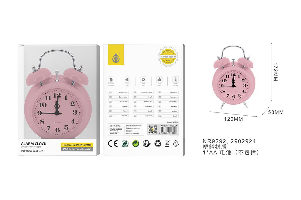 NR9292 RS Reloj con Despertador NO Incluye PILA  12*5.8*17.2 CM,Rosa