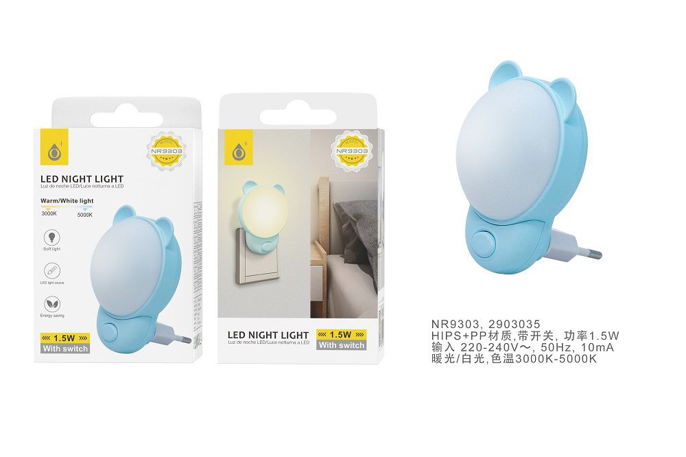 NR9303 AZ Luz nocturna con interruptor ON/OFF,1.5W,Azul