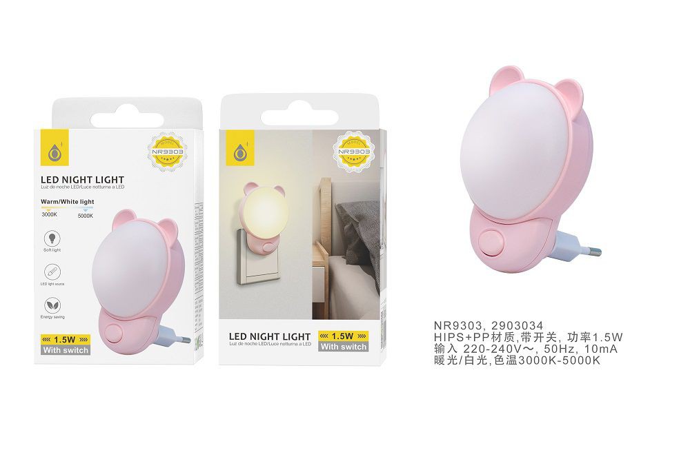 NR9303 RS Luz  nocturna con interruptor ON/OFF,1.5W,Rosa