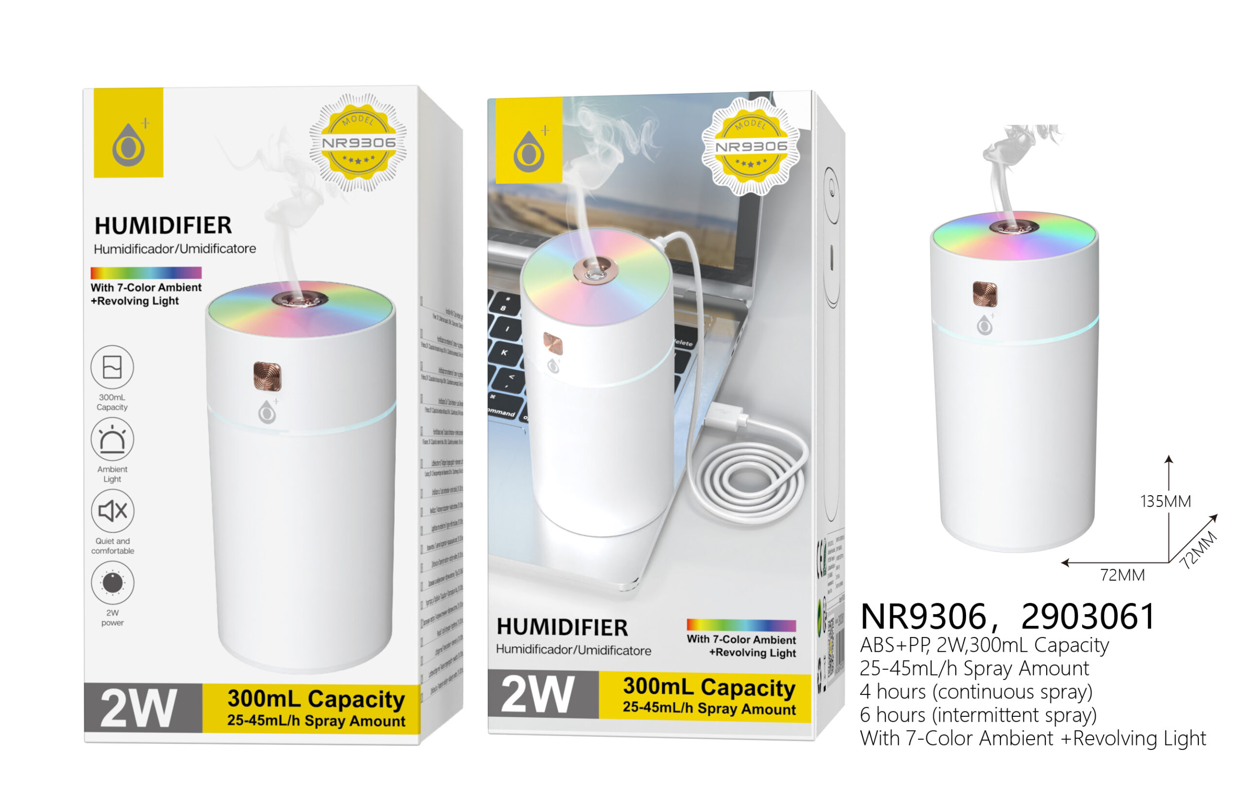 NR9306 BL Humificante Aroma Air Luz Ambiental 7 color ,Capacidad 300ML ,25-45ml/H , 2W, Blanco