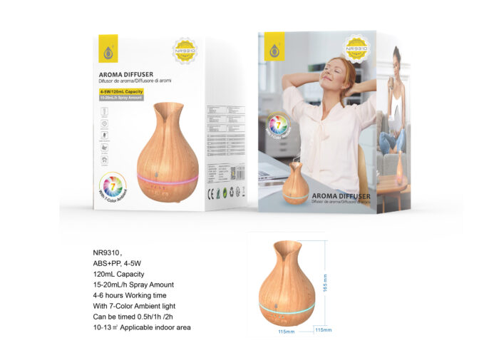 • NR9310 NE Humificante Aroma Air Luz Ambiental 7 color , Temporizador hasta 2 Horas,Capacidad 120mL ,15-20ml/H , 5W, Negro