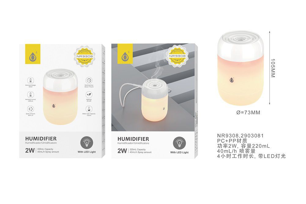 NR9308 BL  Humidificador  Aroma Air luz Led ,220ML , 40ml/H,2W, Blanco