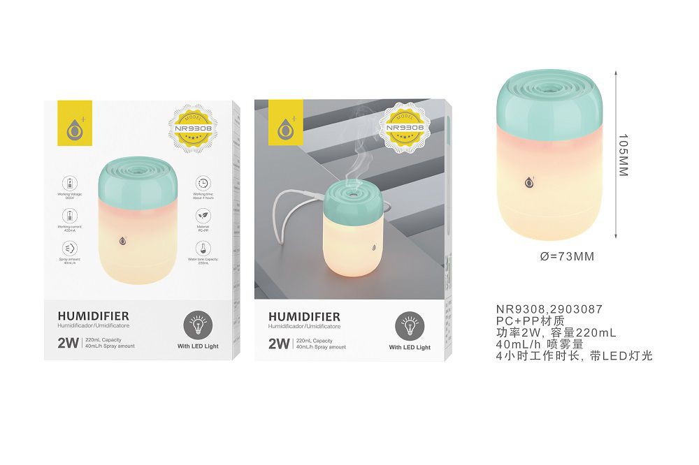 NR9308 VE  Humidificador  Aroma Air luz Led ,220ML , 40ml/H,2W, Verde