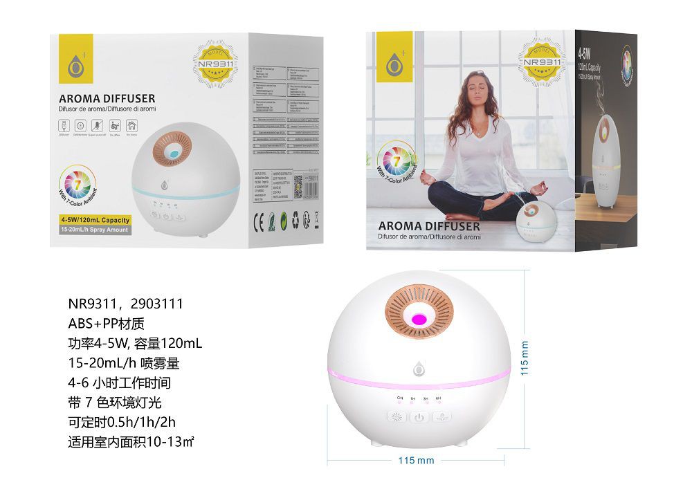 NR9311 BL Humificante Aroma Air Luz Ambiental 7 color , Temporizador hasta 2 Horas,Capacidad 120mL ,15-20ml/H , 5W, Negro