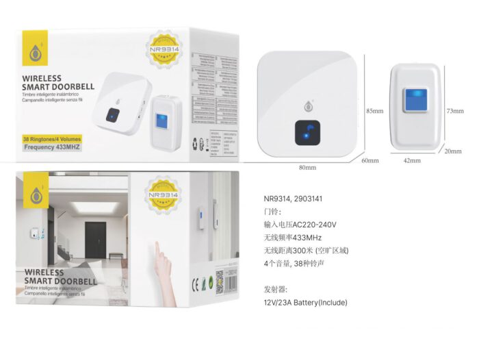 NR9314 BL Timbre Inteligente Inalambrico con 38 tonos de timbre y 4 Niveles de Volumenes, Frecuencia de 433MHZ,