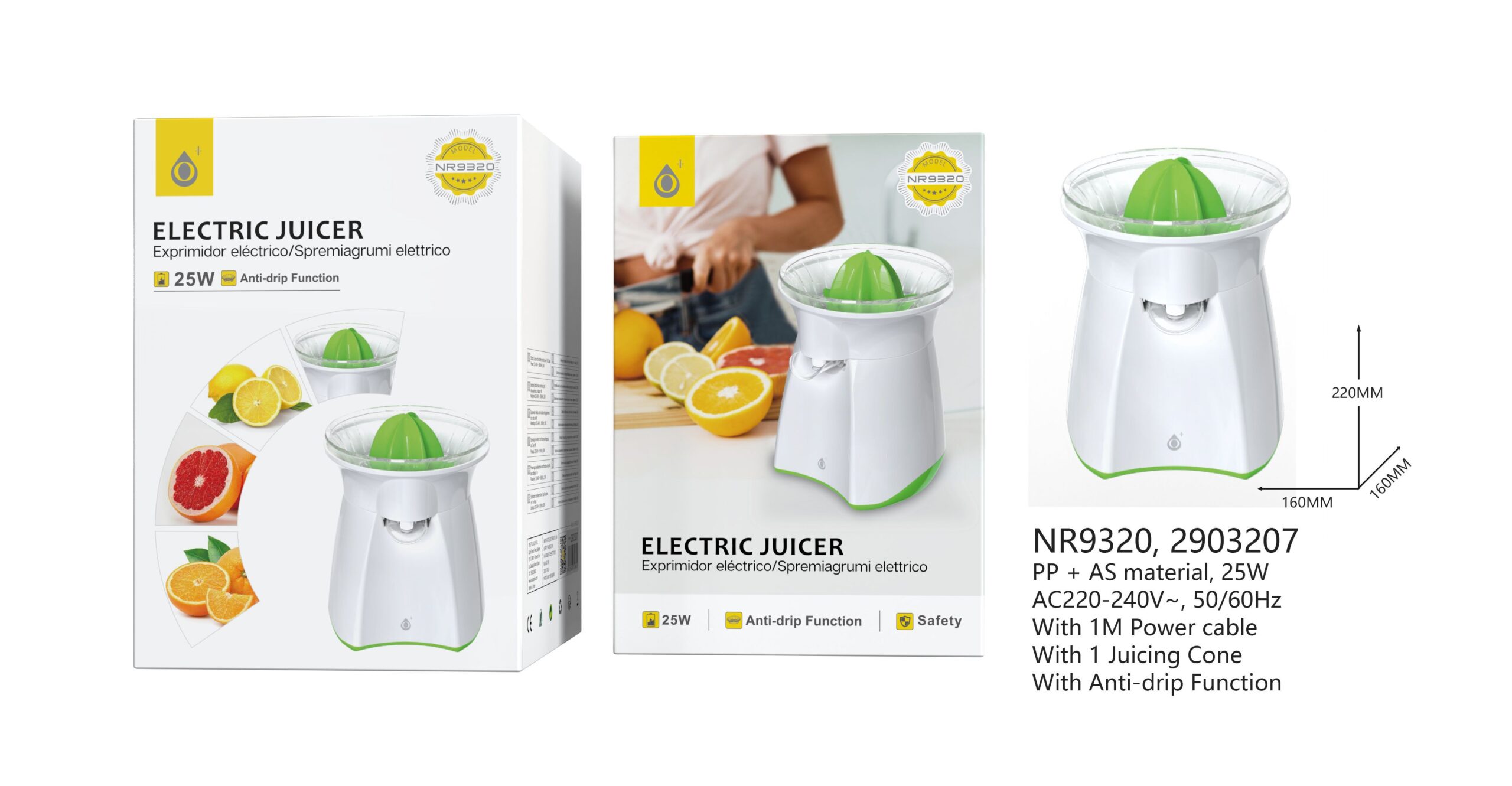 NR9320 BL+VE Exprimidor Electrico con Interruptor ON/OFF, con Antigoteo, 25W,