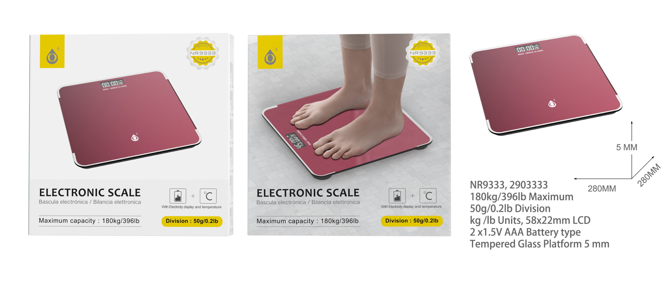 NR9333 RJ Bascula Electronica conplataforma de vidrio templado de 5 mm,Pantalla LCD