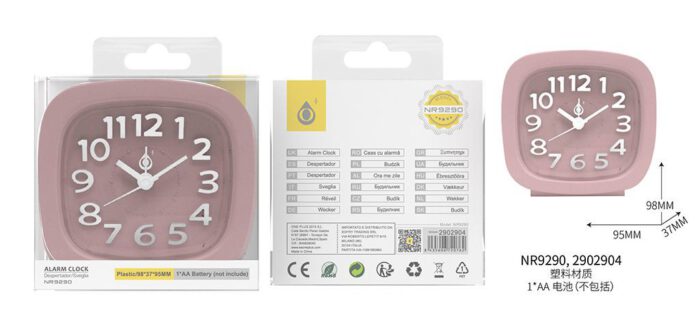 • NR9293 RS Reloj con Despertador NO Incluye PILA 8.8*3.4*9.3 CM, Rosa