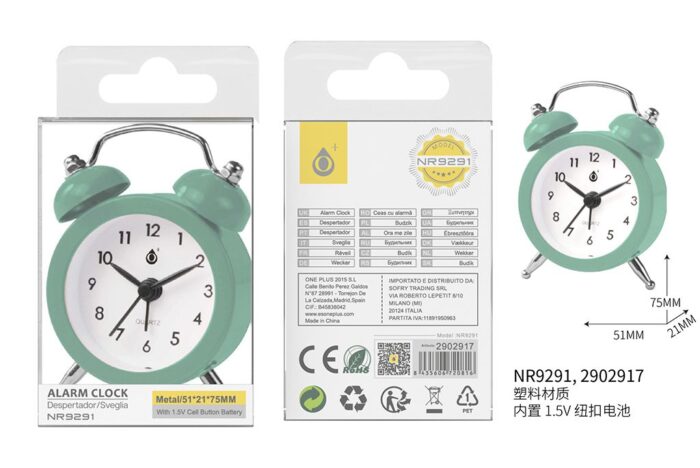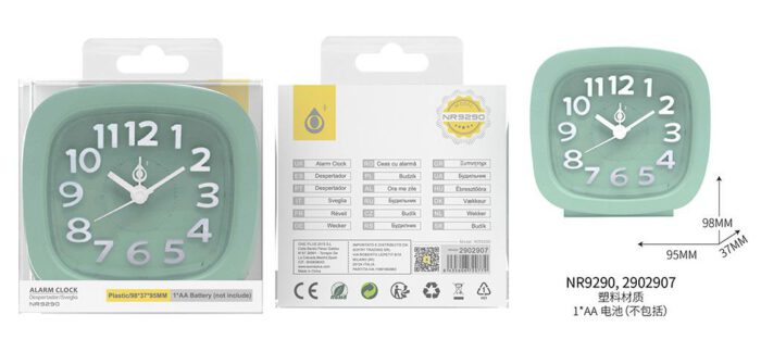 • NR9293 VE Reloj con Despertador NO Incluye PILA 8.8*3.4*9.3 CM,Verde