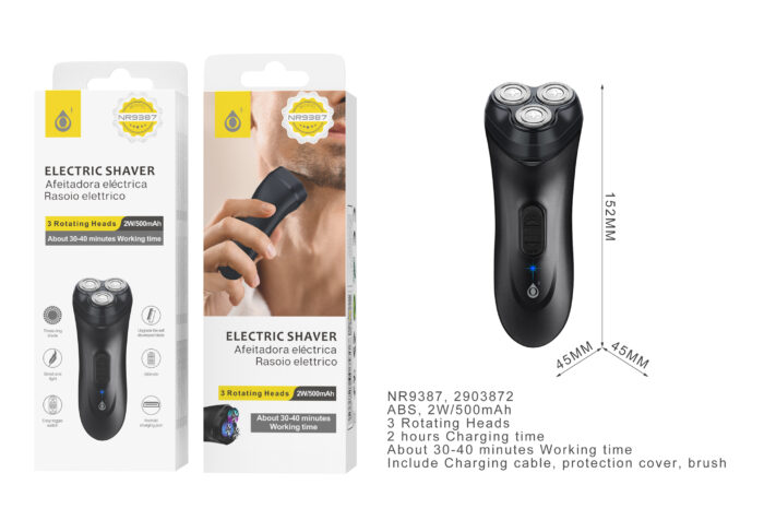 • NR9381 NE Afeitadora electrica, Bateria Recargable USB 5w/600mAh con cepillo de limpieza , Negro