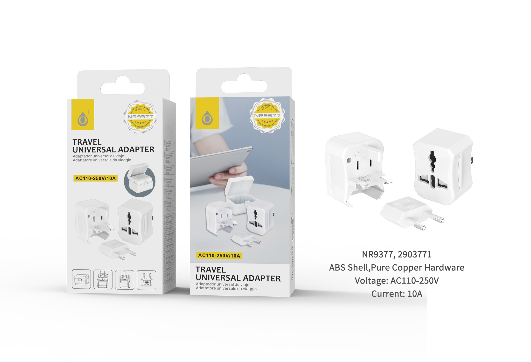 NR9377 BL Adaptador de Enchufe para Viaje Universal US/EU/UK/AUS 4 en 1, 110-250V/10A, Blanco