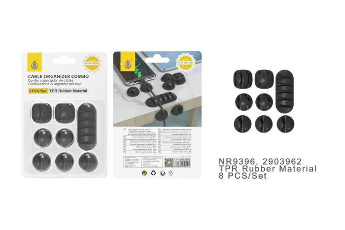 NR9396 NE  Organizador Silicona de Cables  8pcs, Negro