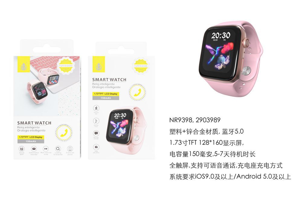 NR9398 OR Reloj Inteligente bluetooth 5.0 con Pantalla tactil TFT de 1.73 pulgada, Permite llamada,Bateria 150mAh,Requiere Andriod5.0+/iOS 9.0+, Oro
