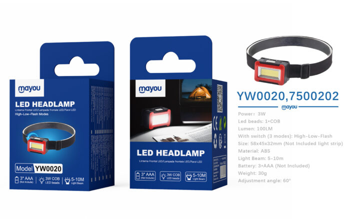 • YW0020 NE Linterna Frontal COB led, 3 modos(Alto/Bajo/Funcion de destello), Bateria 3*AAA/3W/100LM No incluido, Negro