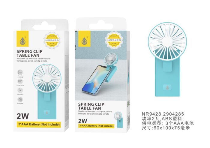 • NR9428 BL Mini ventilador con Clip, Bateria 3*AAA(No incluye)/2W, Blanco