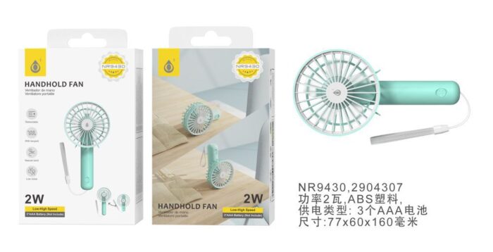 • NR9430 VE Mini ventilador Portatil con correa, Bateria 3*AAA(No incluye)/2W, Verde