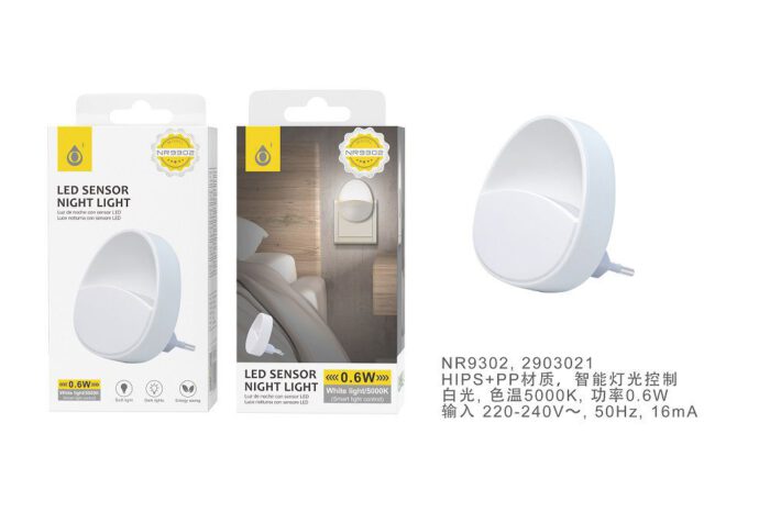 • NR9302 BL Luz nocturna con sensor de LED 0.6W, Blanco