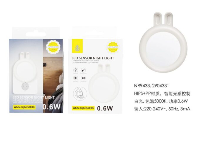 NR9433 AM Luz nocturna con sensor de LED, Luz Blanca 5000K, 0.6W, Amarillo
