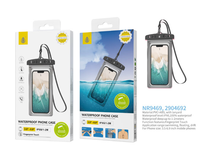 • NR9468 NE Funda impermeable con correa, Tactil para Movil 3.5-6.9 Pulgada, IPX6 Profundidad 0.5-1M, Negro