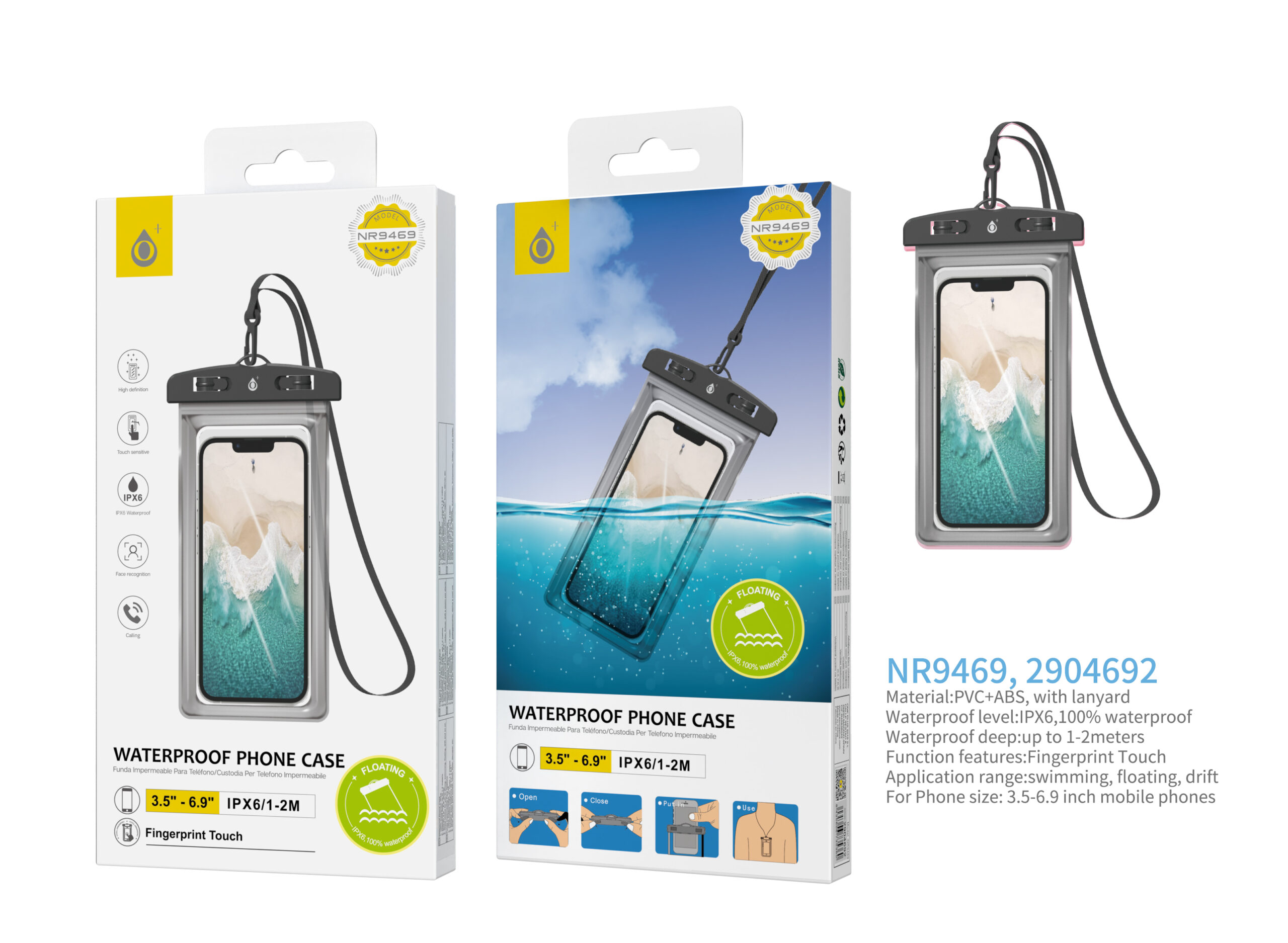 NR9469 NE Funda impermeable con correa, Tactil para Movil 3.5-6.9 Pulgada, IPX6 Profundidad 1-2M, Negro