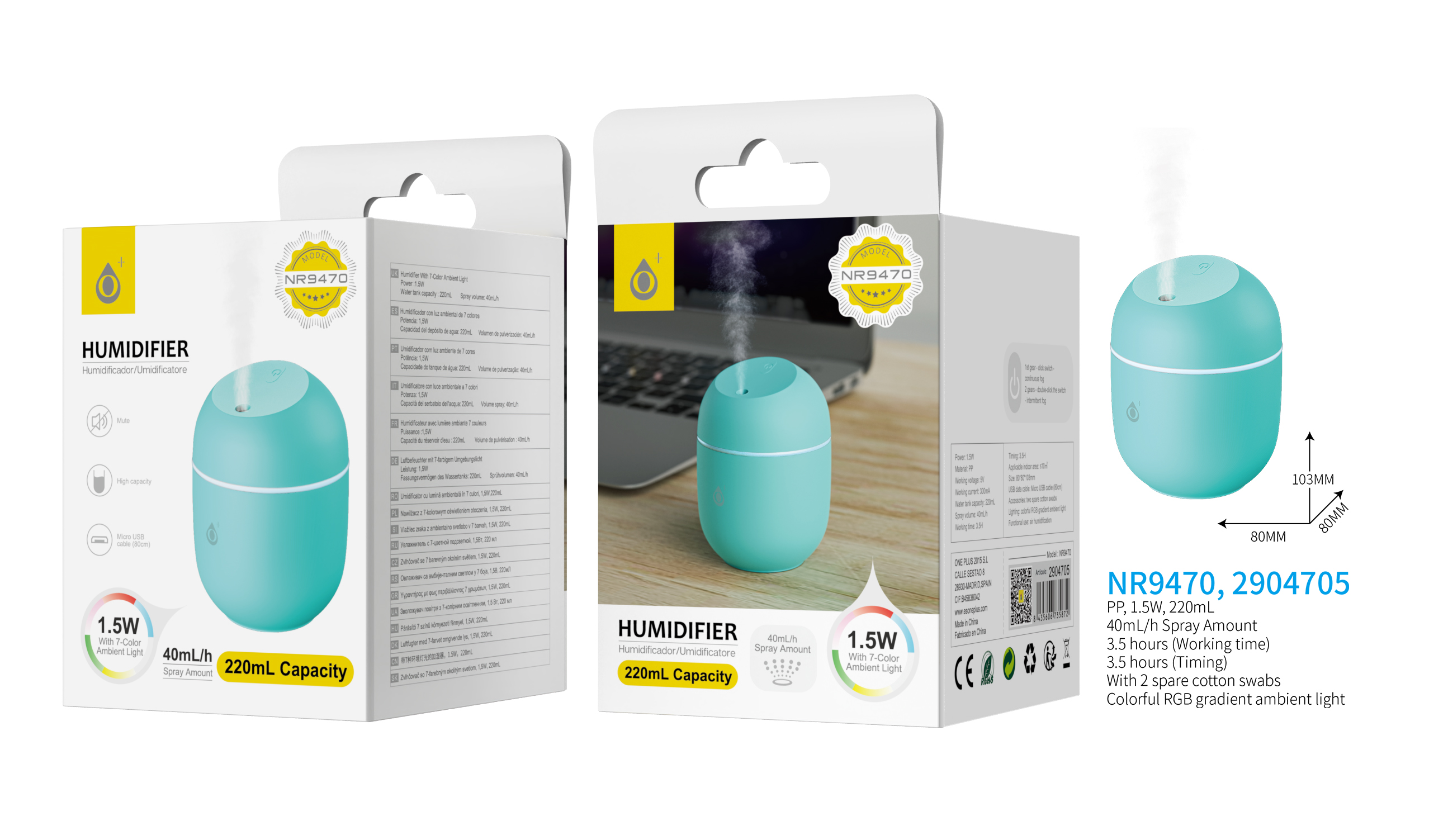NR9470 AZ Humificante con Luz RGB Ambiental 7 color, Capacidad 220ML ,40ml/H 1.5W, Azul