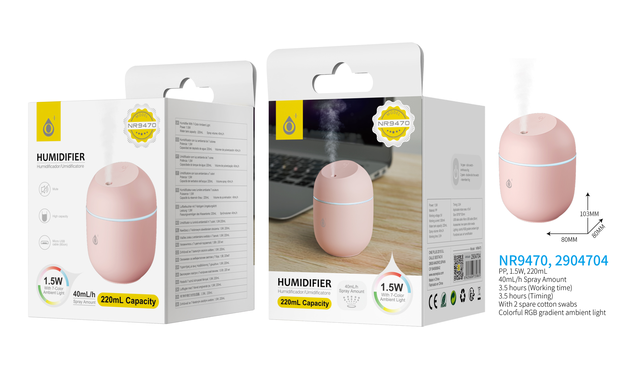 NR9470 RS Humificante con Luz RGB Ambiental 7 color, Capacidad 220ML ,40ml/H 1.5W, Rosa
