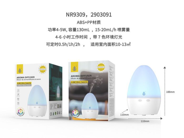 • NR9306 BL Humificante Aroma Air Luz Ambiental 7 color ,Capacidad 300ML ,25-45ml/H , 2W, Blanco