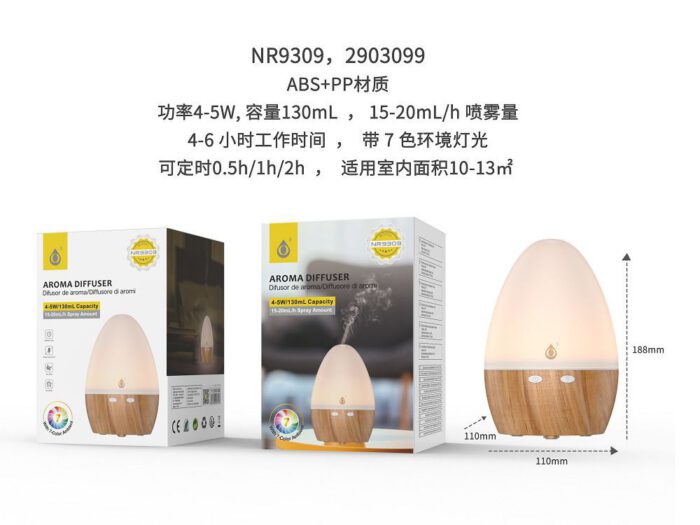 • NR9309 MA Humificante Aroma Air Luz Ambiental 7 color , Temporizador hasta 2 Horas,Capacidad 130mL ,15-20ml/H , 5W, Marron